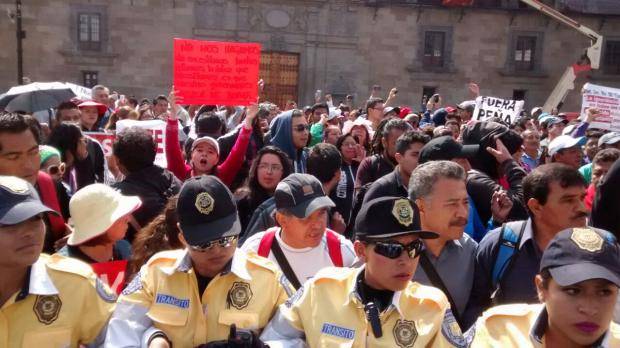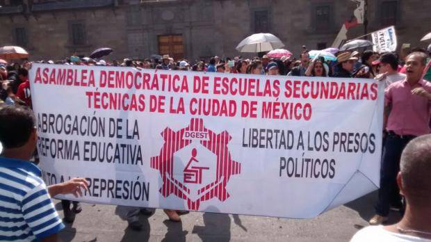 Ciudad de México.- Integrantes de la Coordinadora Nacional de Trabajadores de la Educación, lograron acceder al Zócalo capitalino para realizar una manifestación, con el fin de demandar la abrogación de la Reforma Educativa.